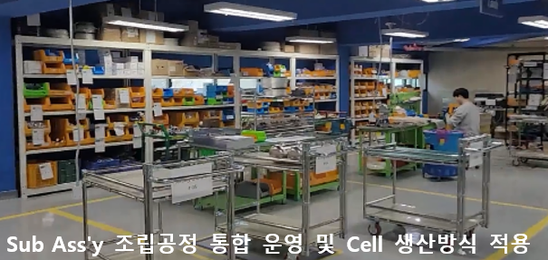 옥서스는 Sub Ass'y 통합 운영을 통해 생산 체계를 Lot/주 단위에서 Lot/일 단위로 변경했다. 이로 인해 주단위 생산진행으로 인한 현장 내 조립자재 과다 보유와 Sub Ass'y 대기 시간 Loss가 발생 되던 문제점을, 일단위 생산방식으로 변경하여 재공 감소와 대기 Loss 단축등 개선이 이루어졌다.